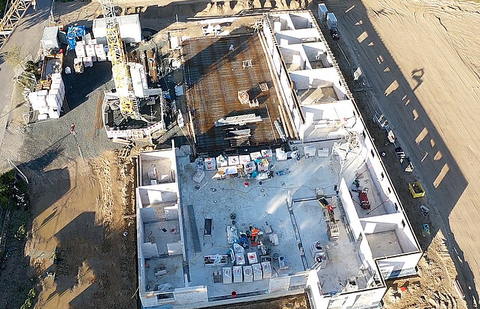 Hier entsteht eine neue Kindertagesstätte mit Bewegungsraum, welcher an die Bellmannhalle angeschlossen wird.